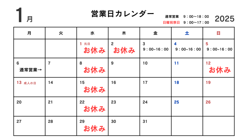 お知らせ 2024年→2025年 年末年始の営業について いつも一勝庵をご利用いただきありがとうございます。年末年始の営業についてお知らせです。下記日程にて営業いたします。2025年も何卒よろしくお願いいたします。 TOPICS一覧へ 電話・問い合わせをする